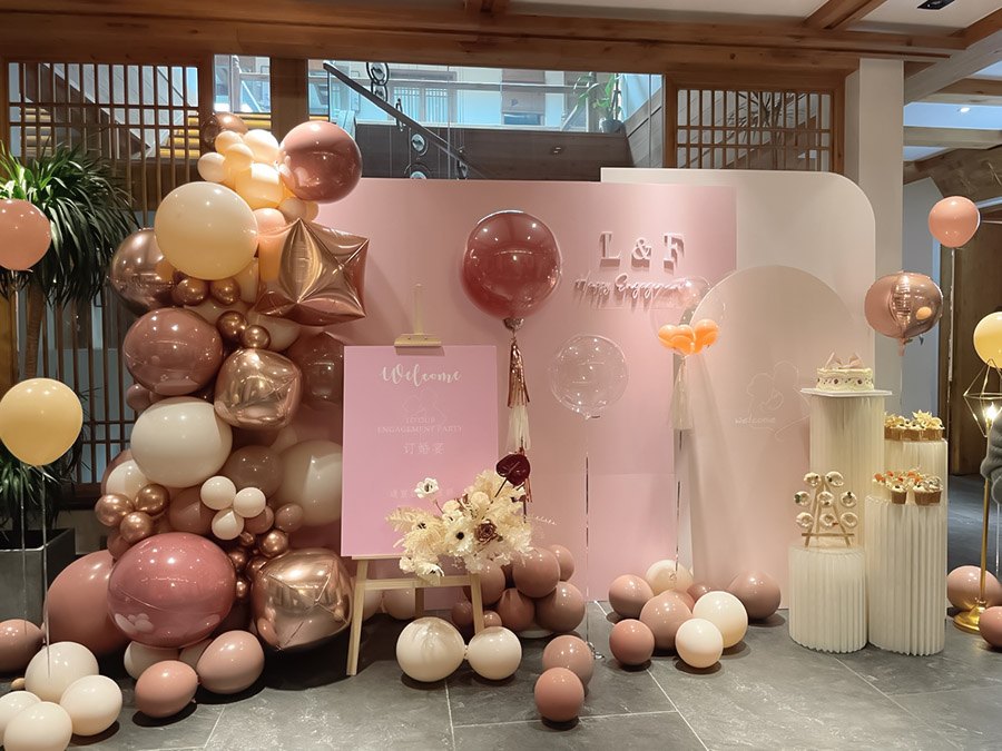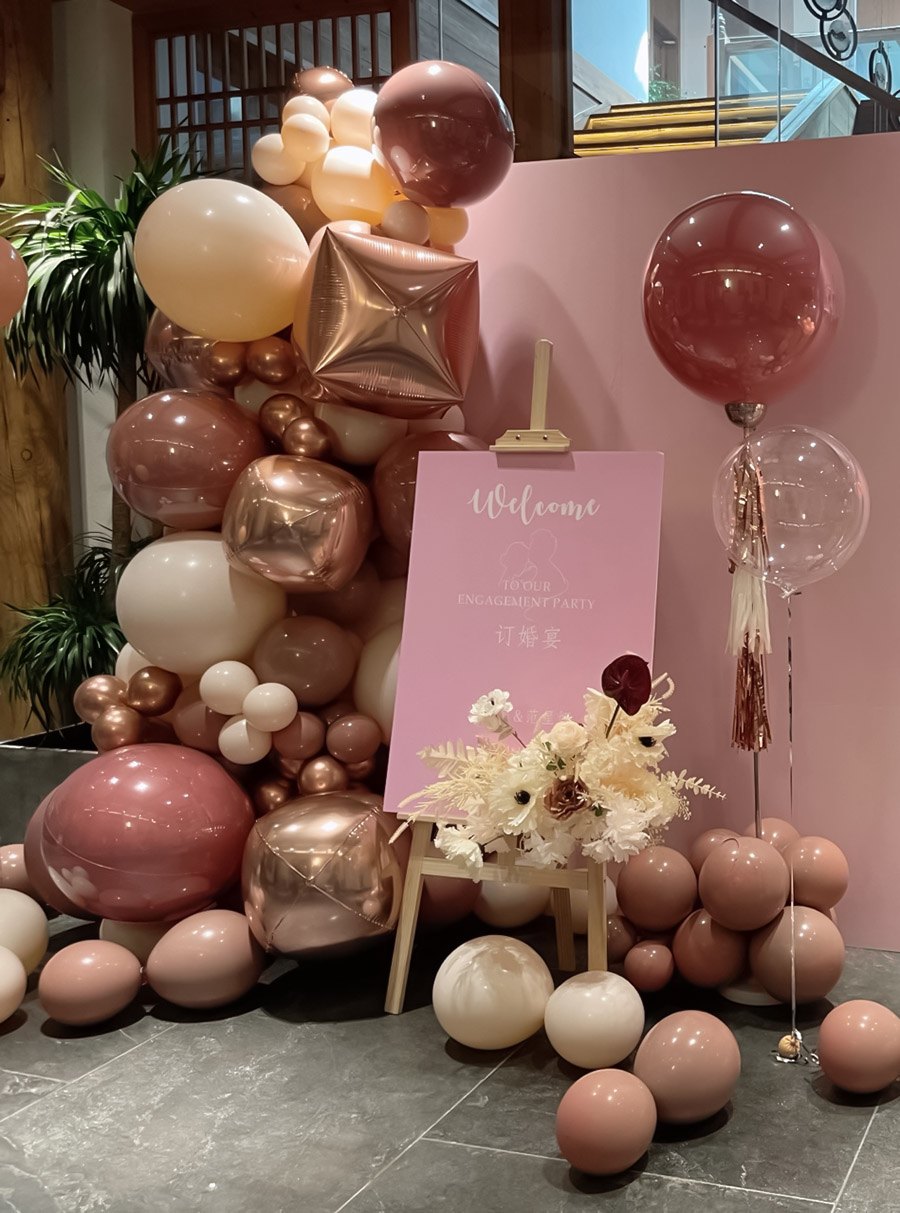 玫瑰金复古粉色气球🎈订婚宴会💎简约布置