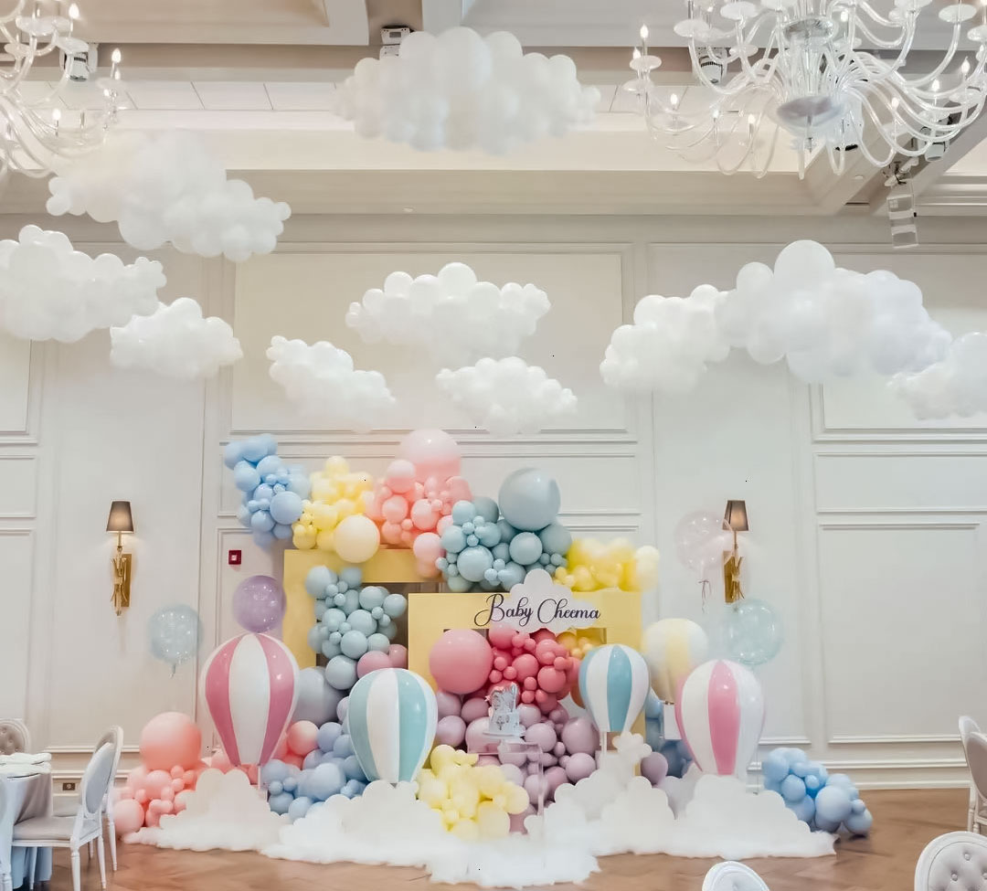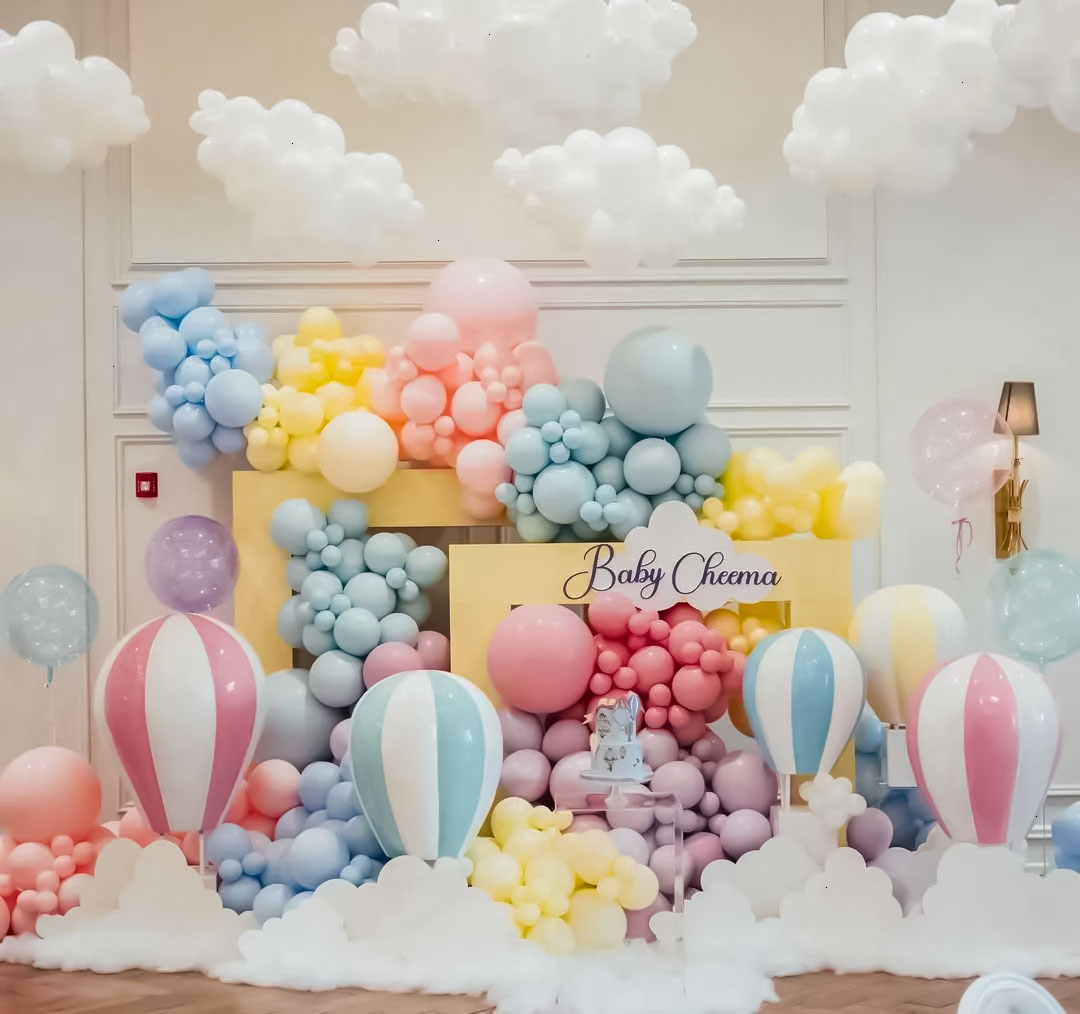 🎠非常好看的马卡龙色云朵热气球生日布景🎈