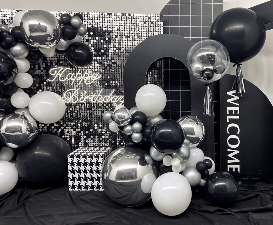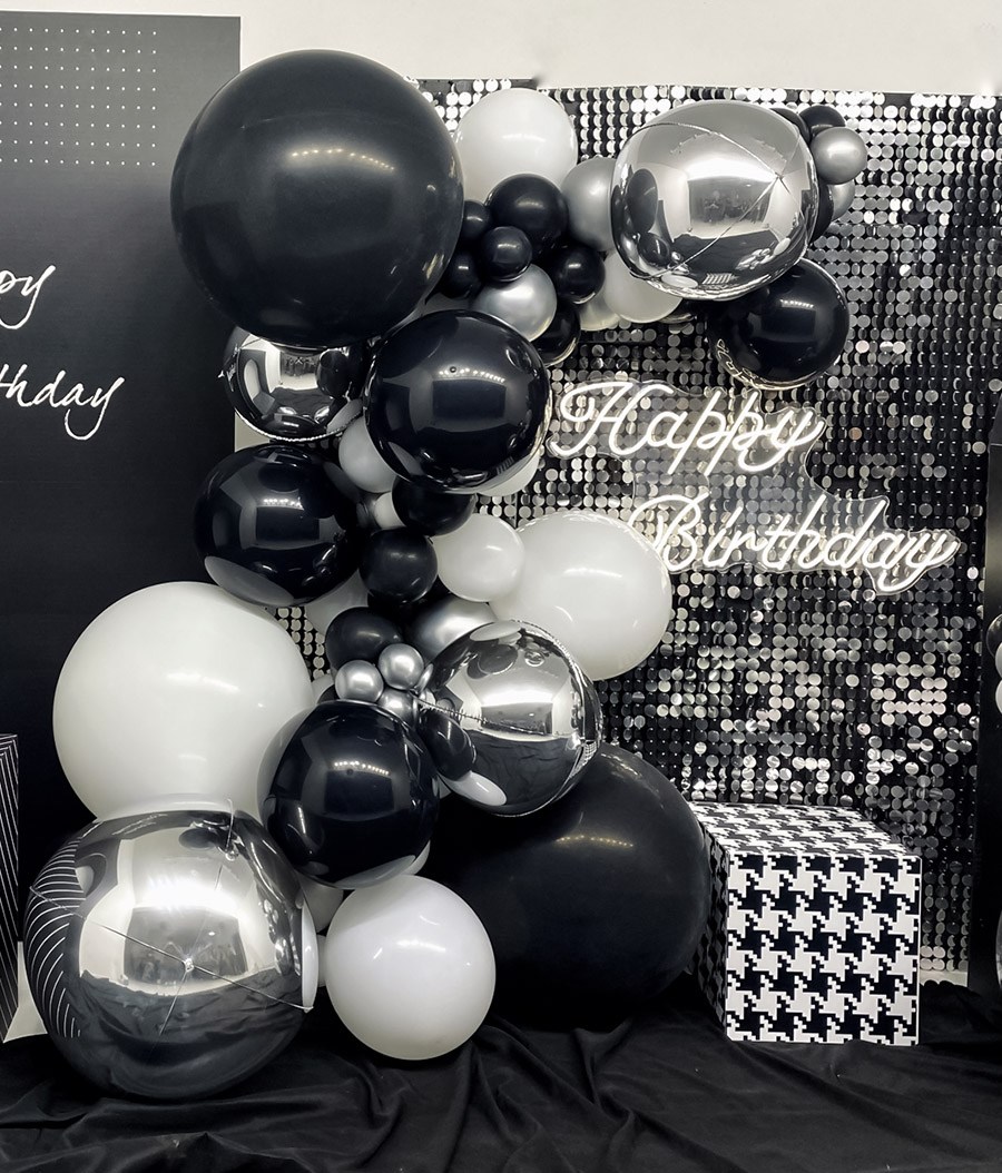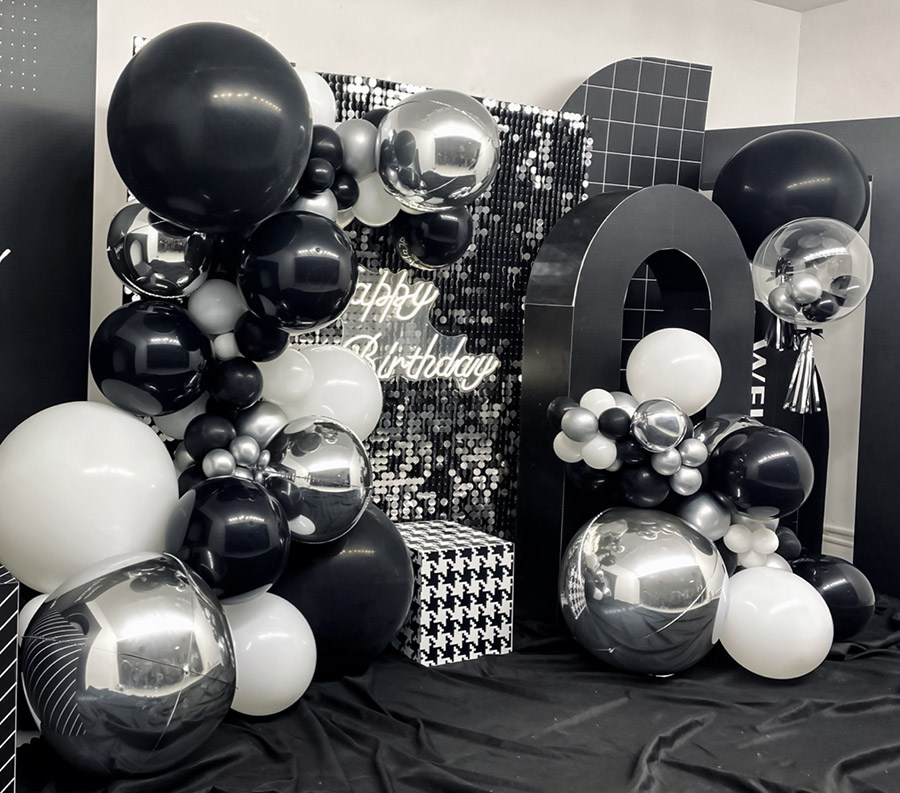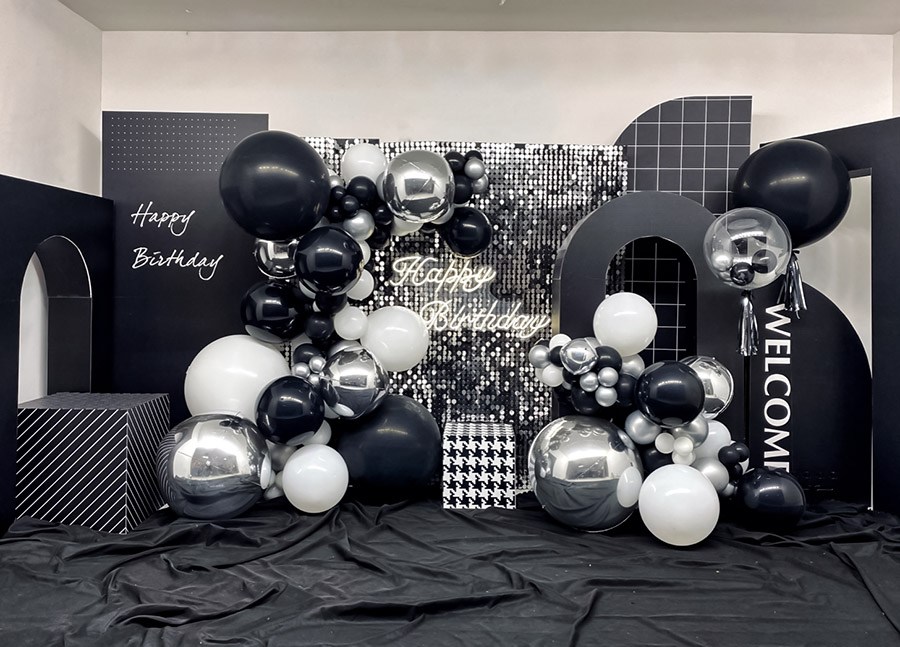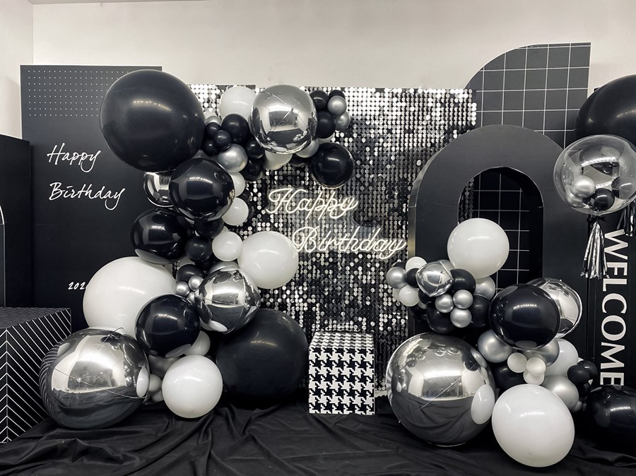 男孩18岁生日时尚黑色金属色4D气球布置