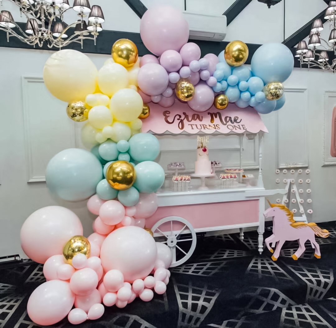 小宝宝生日宴粉嫩马卡龙气球派对