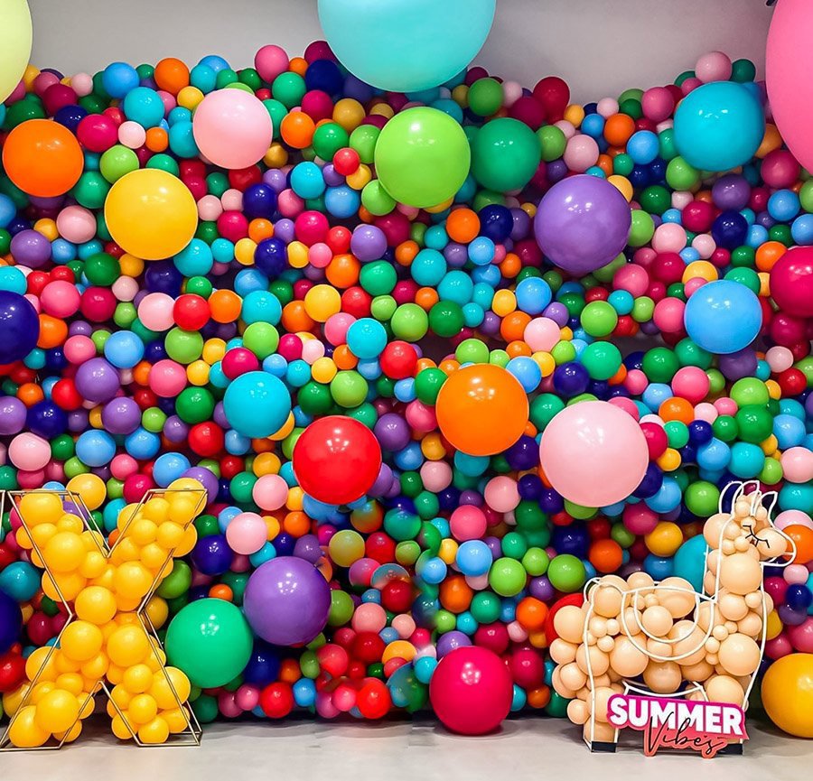 搭配了一条今年超火的韩国网红彩虹条气球,