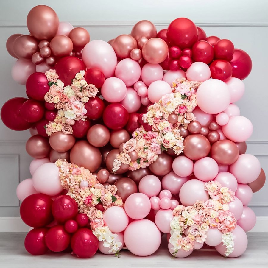 宝宝周岁礼石榴红金属金气球布置