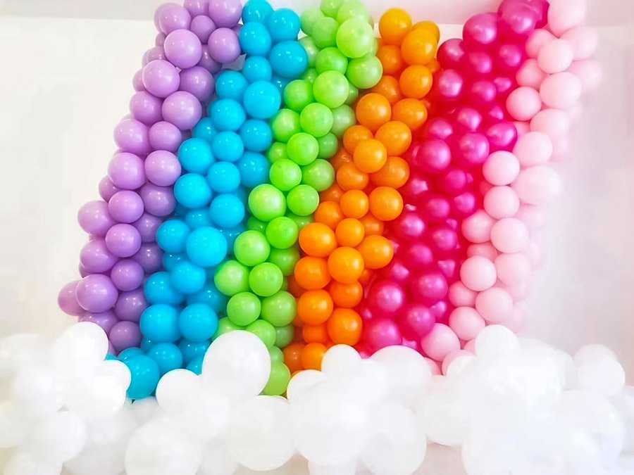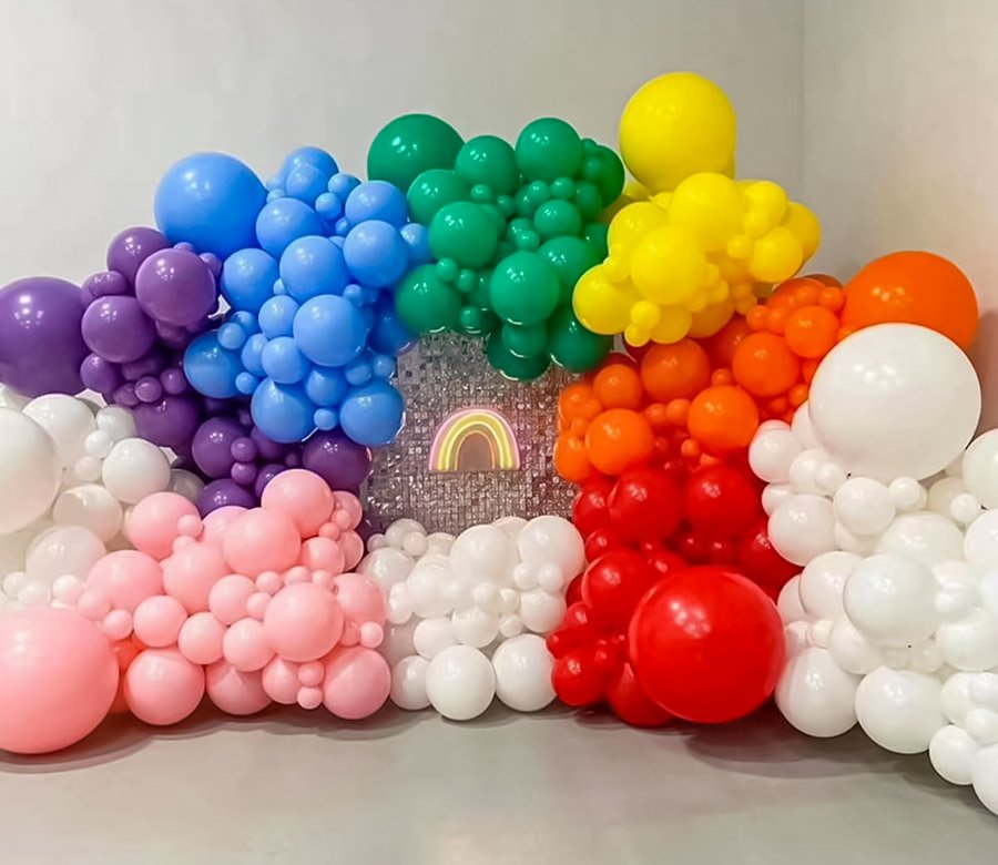 户外彩虹生日气球派对阳光明媚的彩虹色主题
