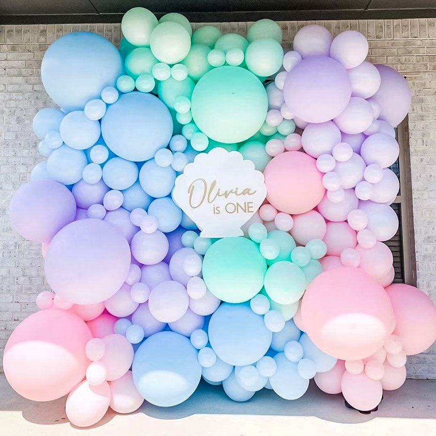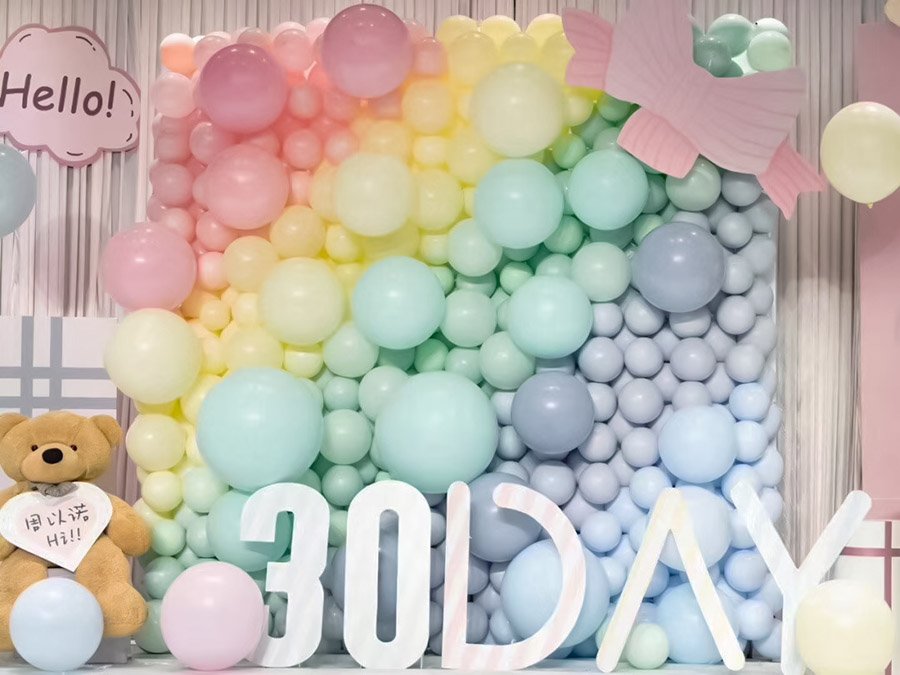 温馨好看的宝宝宴背景马卡龙气球布置