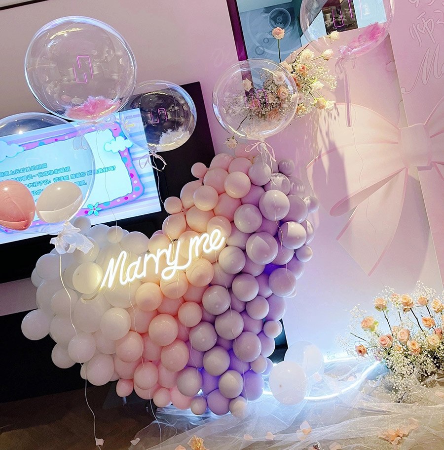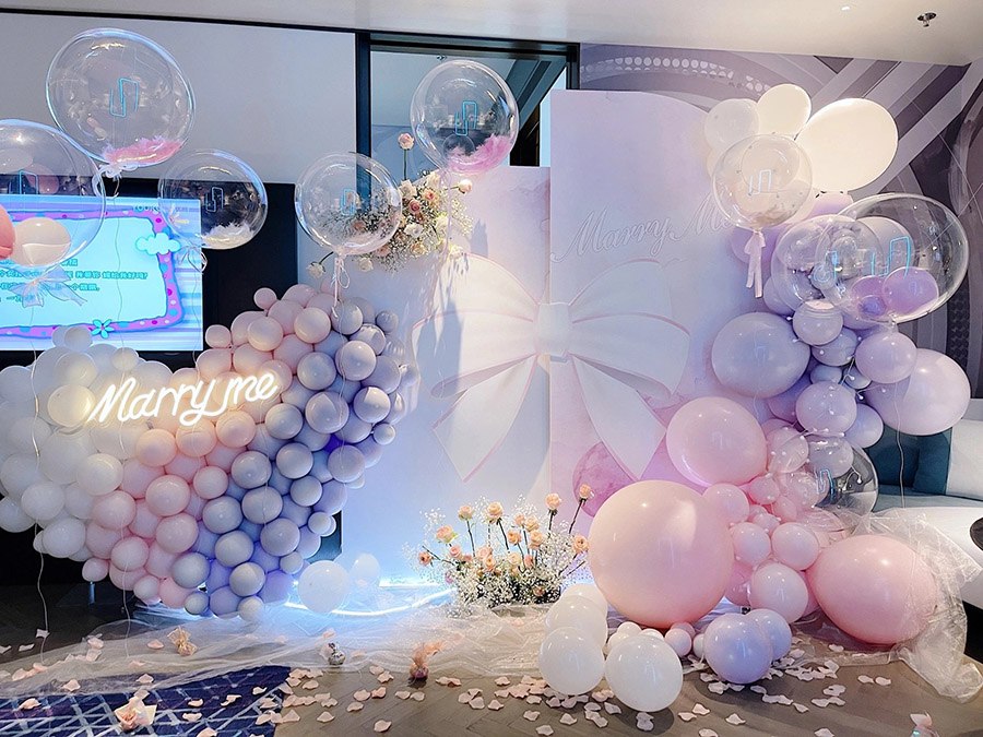 爱心气球造型打造梦幻的求婚效果!无论你是