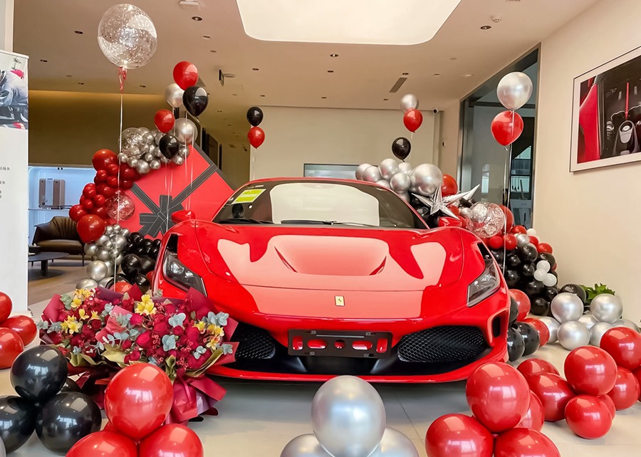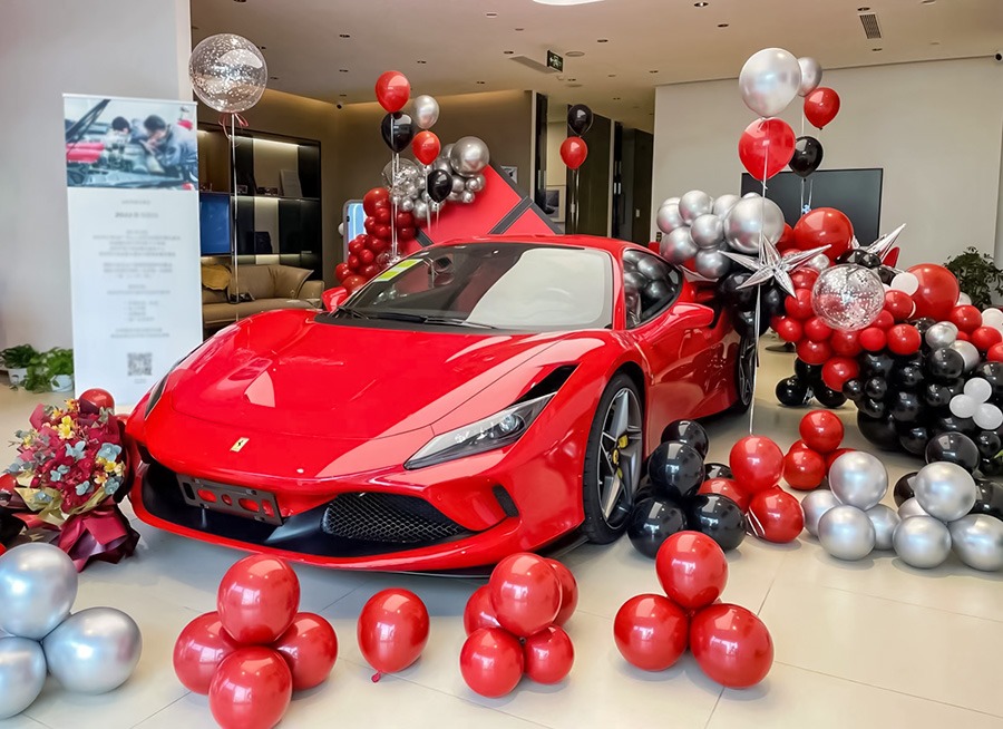 红色法拉利提车仪式布景🚗交车气球布置