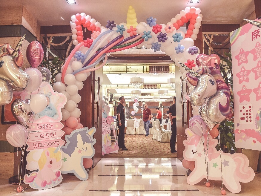 小宝宝的生日PARTY,充满了气球,粉嫩